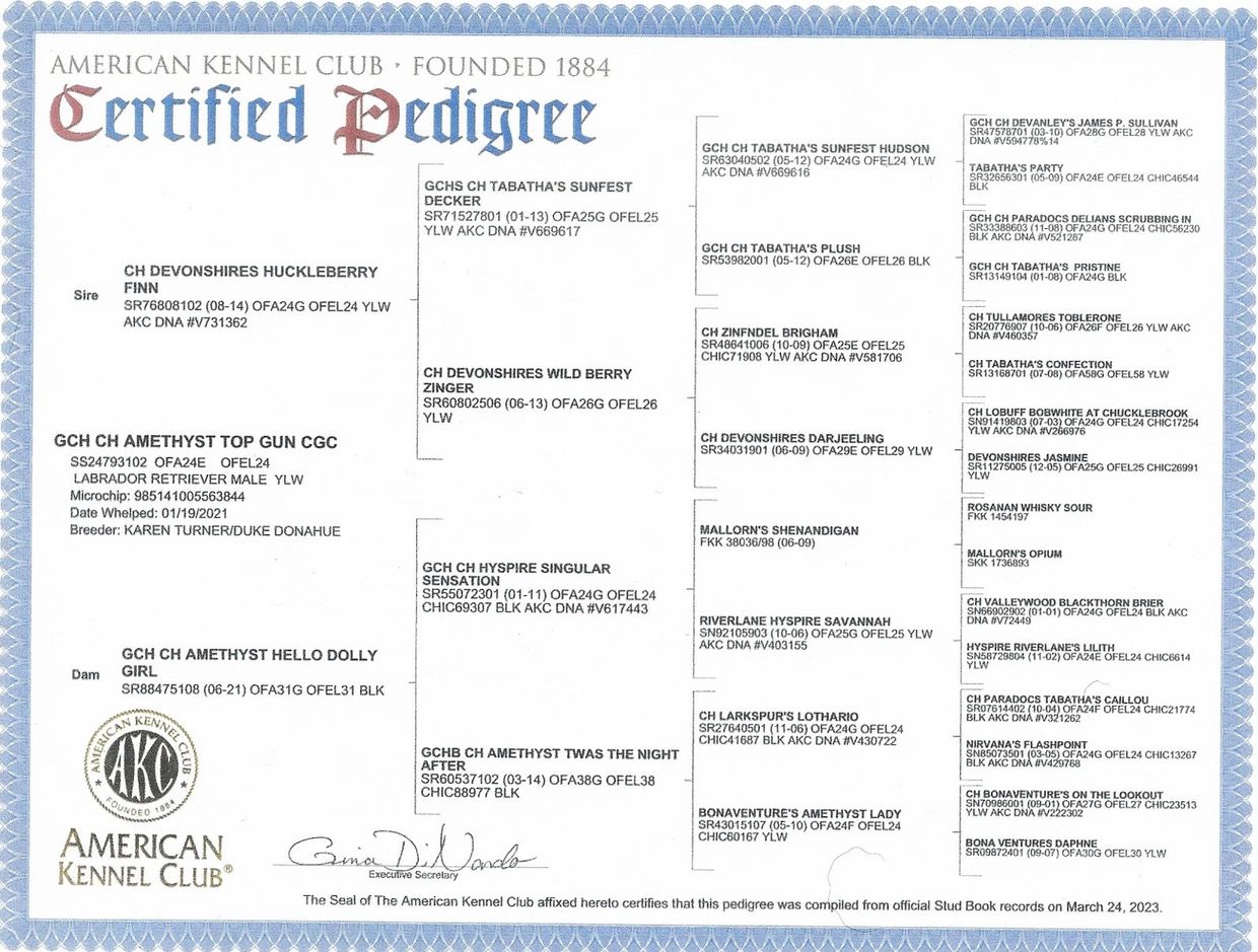 Maverick has all his Health Clearances as recommended by the National LRC and are available upon request.